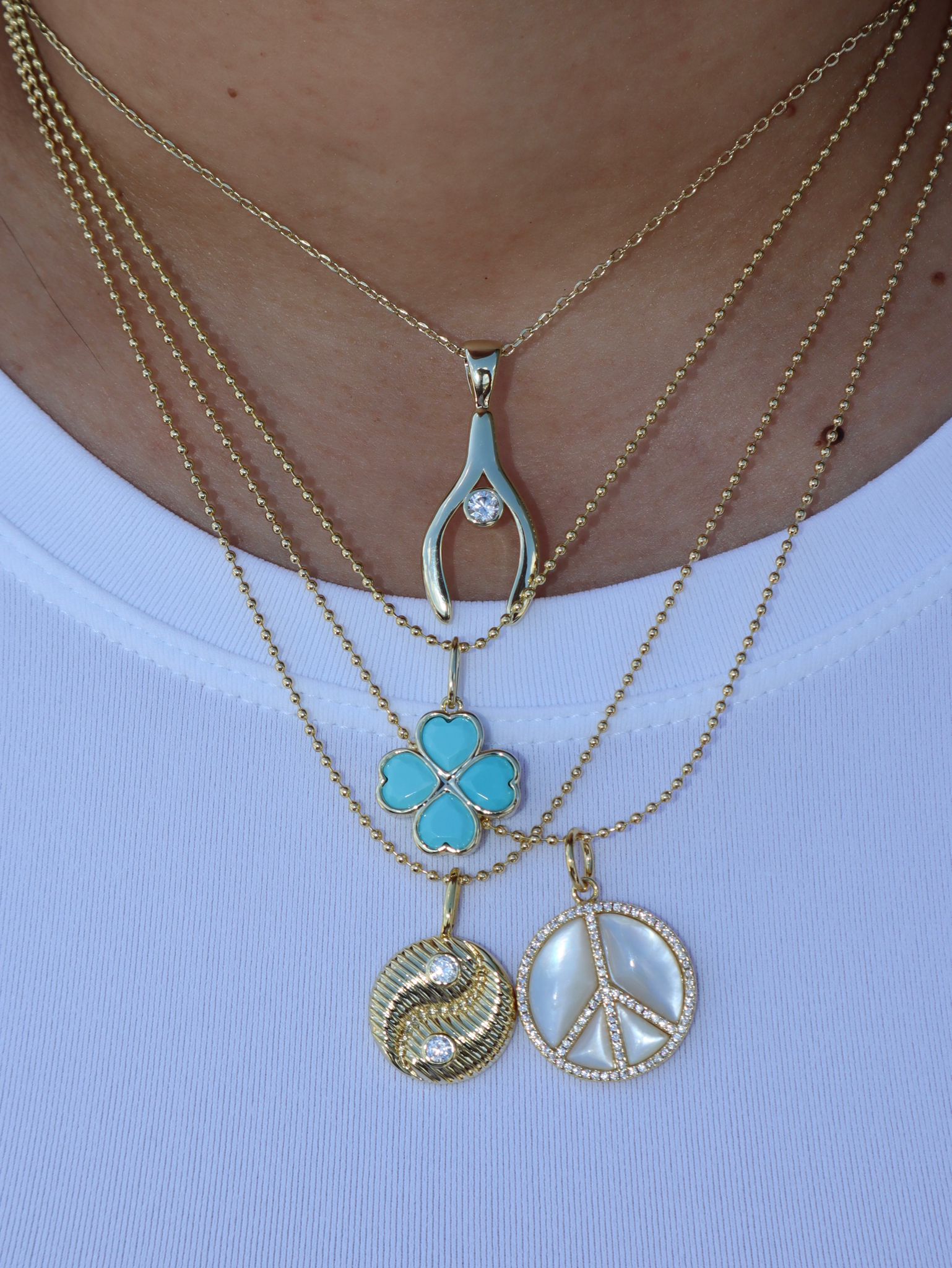 The ancient philosophy of yin and yang inspired this beautiful fluted pendant. The idea of two opposite but harmonious energies coexisting can be applied everywhere in our lives. This delicate gold necklace will be the perfect layering piece to add to your stack!